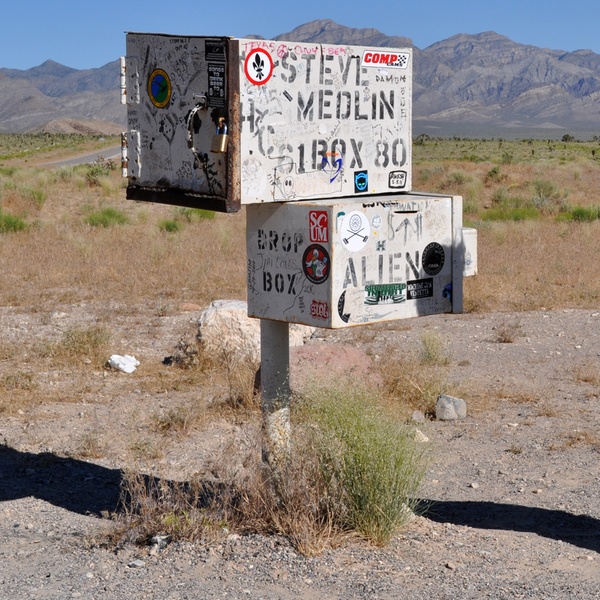 Key StopsTop Secret Janet Airlines viewing, Joshua Tree Forest, ancient dry lake (UFO sightings), Little A’le’ Inn, Black Mailbox, and the absolute perimeter of Area 51