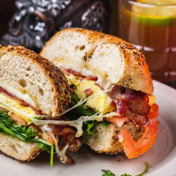 • One Entrée—Choose from Specials & Seasonal dishes, All-Day Egg Sandwiches, Sweet Breakfast & Pastries, Yummy ''Everything'' Bagels, All-Day Sandwiches, French Crêpes, or Garden Salads