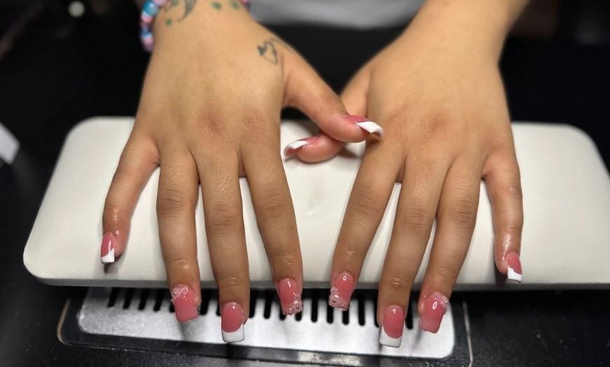 Promotional value expires 180 days after purchase. Amount paid never expires. Appointment/Reservation required. Merchant contact information will be available for you after purchase in your voucher. Please arrive 10 minutes early. 24-hour cancellation notice required. Designs and Rhineshtones are not included, please see menu at location. Valid for 6 months. Not valid with other offers or promotions. May be repurchased every 90 days. Limit 1 per person. Merchant is solely responsible to purchasers for the care and quality of the advertised goods and services. Learn about Strike-Through Pricing and Savings