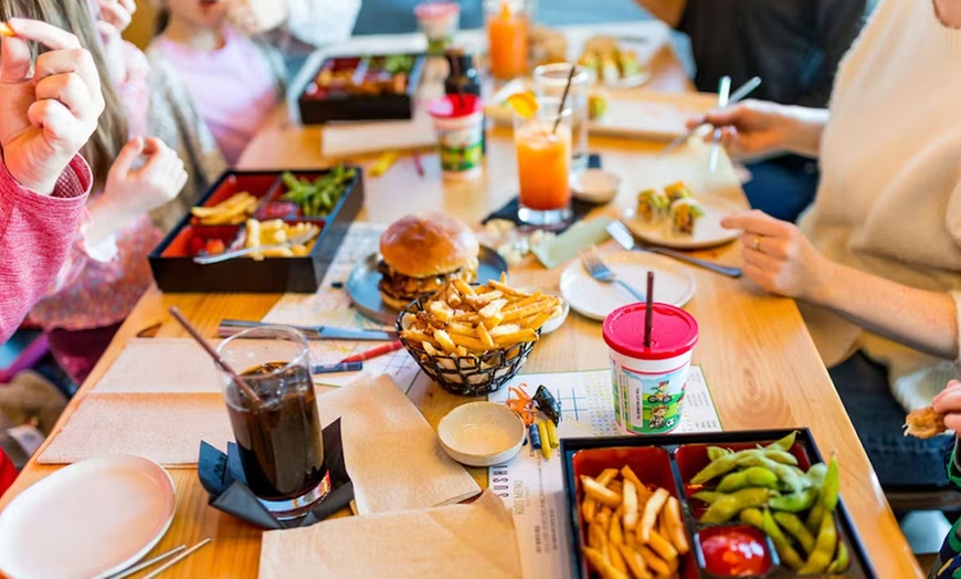Enjoy an exciting fusion of American burgers and Japanese sushi at B.A.S.H. Burger and Sushi House with flexible food and drink deals and a perfect ambiance