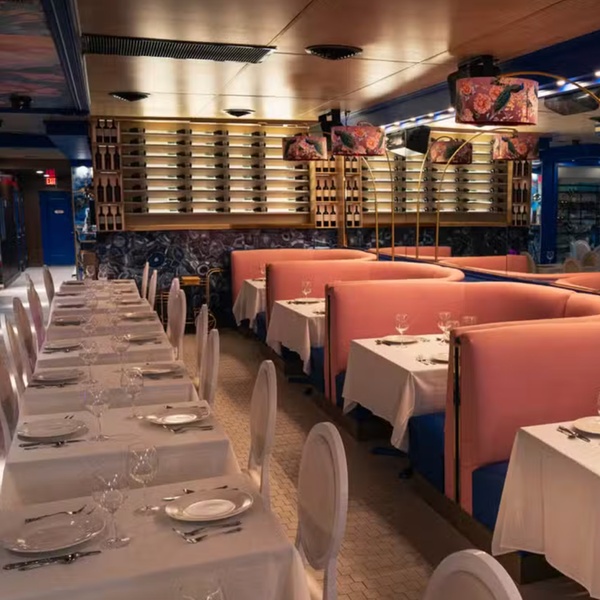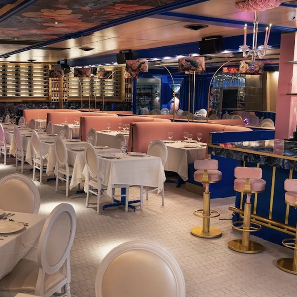 Designed for connection and conversation, the dining room features rich blue velvet, warm brass accents, and candlelight that lingers just long enough to invite guests to stay a while.