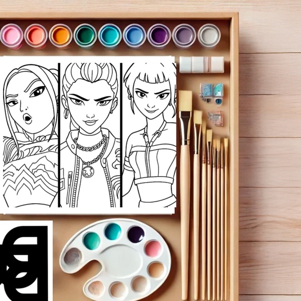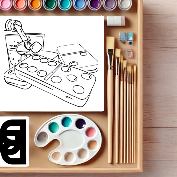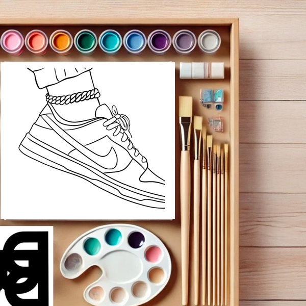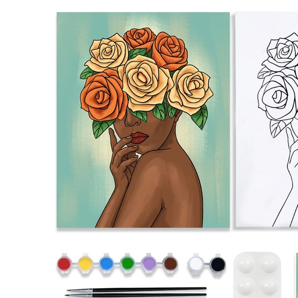 Discover your artistic potential with high-quality supplies including an outlined canvas, vibrant paints, and versatile brushes.