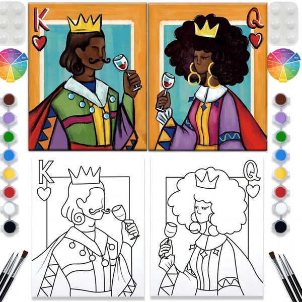 The Date Night Package Kit includes all the supplies of the standard kit, plus a bottle of wine to enhance your romantic and creative evening at home, perfect for creating lasting memories together.