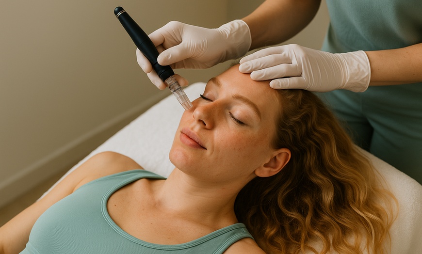 An esthetician uses a tool with thin needles to create tiny holes in the surface layers of skin, which not only helps absorb skincare products for fresh-looking, smoother skin but also boosts healing as well as stimulates collagen and elastin production.