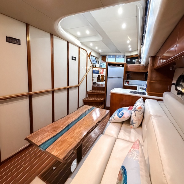 The Azimut 50 ft, departing from the Miami River in front of River Landing, offers the perfect mix of luxury, comfort, and excitement with Jet Skis included, a free extra hour on 4+ hour charters, and world-class service for an unforgettable Miami yacht experience.