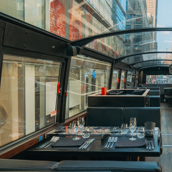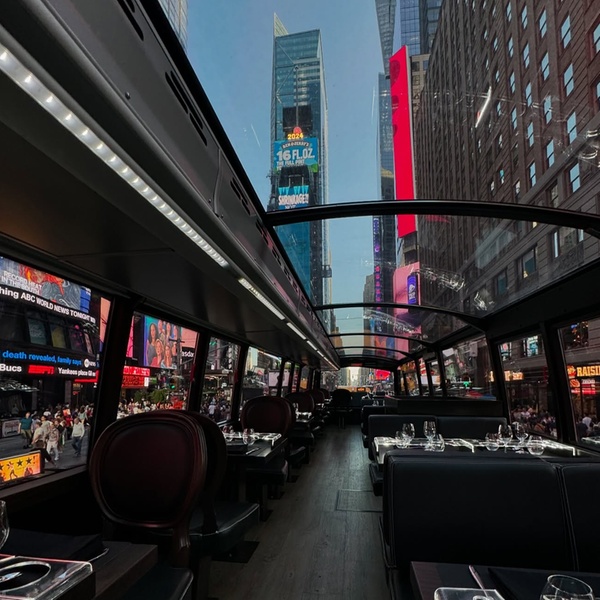 Experience a New York City tour like never before aboard Bustronome NYC. Enjoy a gourmet six-course dinner with panoramic skyline views on a luxury glass-roofed bus, blending fine dining with unforgettable sightseeing.