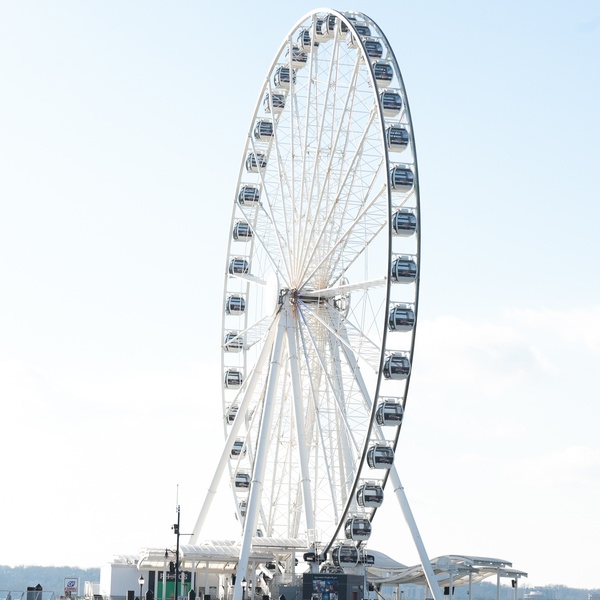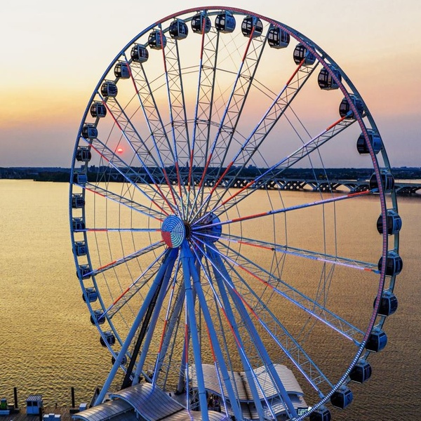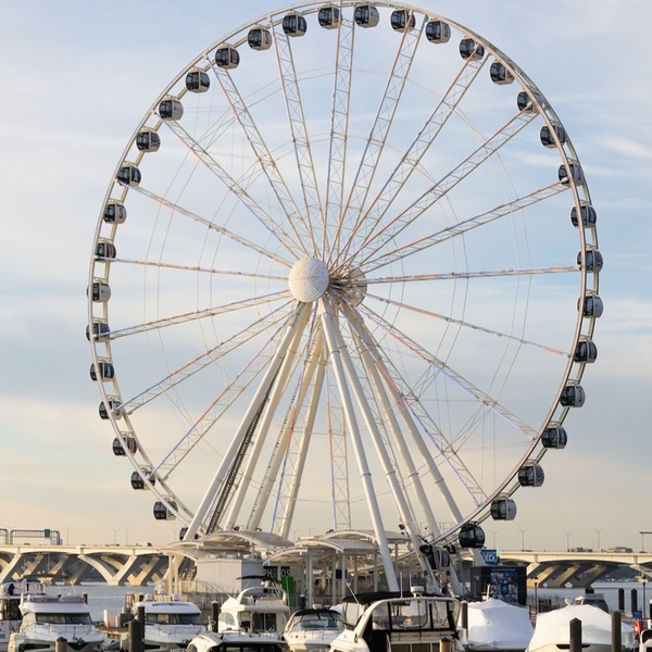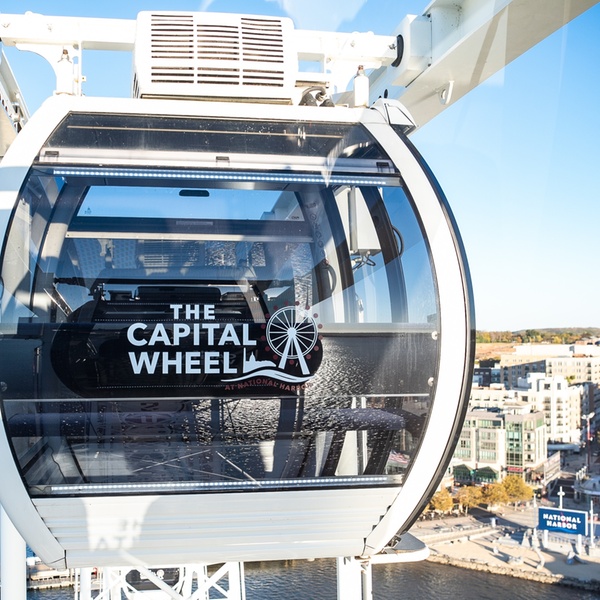 The Capital Wheel is a magnificent 180-foot observation wheel with private, climate-controlled gondolas located at National Harbor in Maryland, offering breathtaking panoramic views of the Nation's Capital, the Washington Monument, National Harbor, and the Potomac River