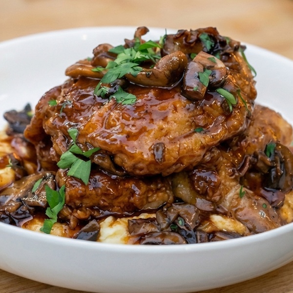 • Ravioli Bianconeri: Decadent ravioli filled with short rib and taleggio, finished with black truffles and balsamic jus.