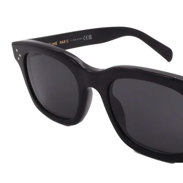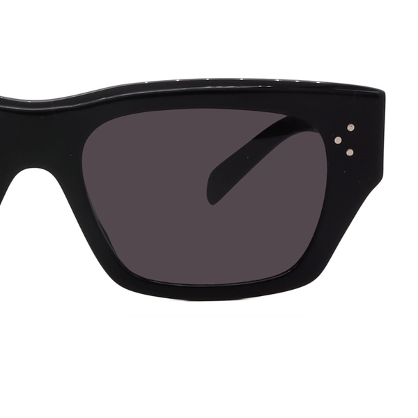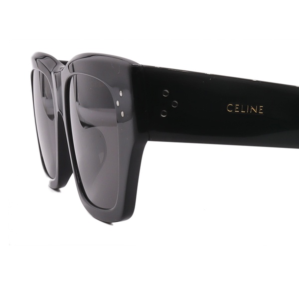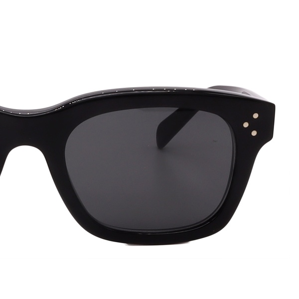 Option 2 CL40232I 01A — Black — 51-21-145 — Grey A quintessential Celine piece, this frame features a sharp, squared-off silhouette in deep black acetate for a sophisticated, versatile look. Its substantial construction and iconic pin-dot detailing on the temples confirm its status as an effortlessly chic accessory.