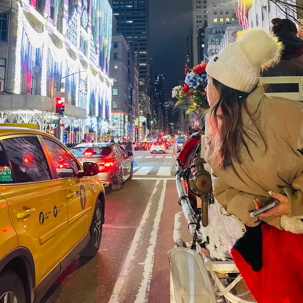 This private carriage ride includes a luxurious 50-minute tour through New York City's most enchanting holiday light displays, including Fifth Avenue, the Saks Fifth Avenue Light Show, Central Park South, the Rockefeller Christmas Tree, and Tiffany's light display.