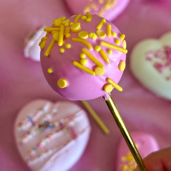• Cake Pops – bite-sized cake (vanilla, chocolate, red velvet, strawberry, or cookies & cream) covered in chocolate.
