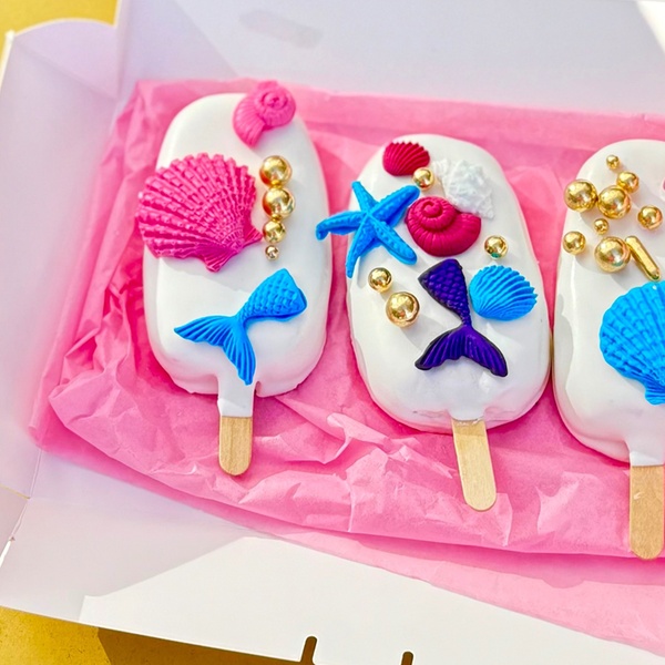 • Cakesicles – rich cake (vanilla, chocolate, red velvet, strawberry, or cookies & cream) coated in premium chocolate.