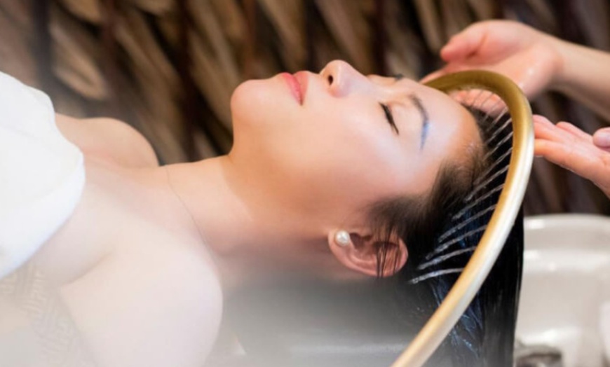 The 60-minute herbal ginger therapy includes a scalp analysis, deep scalp massage using chinese meridian pathways herbal giger treatment and hair mask, shoulder neck and chest massage, and finally a detangle and blowdry. Improve physical and mental therapy, promoting hai growth, alleviating stress, and enhancing sleep.