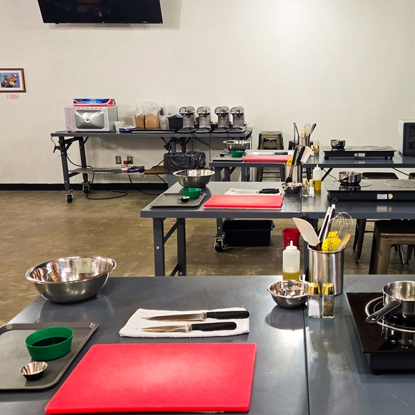 Welcome to Cookin' Class where EVERYONE is the chef! During our classes you and a guest will cook a three course meal with the guidance of a qualified chef. You will enjoy everything you create in our cozy dining room and enjoy access to our bar for beer & wine purchase! During class you will also enjoy complimentary coffee, tea, snacks and a free photo booth session!