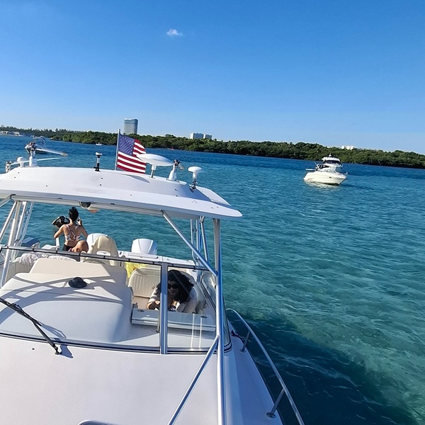 Embark on an unforgettable private boat charter for up to 6 guests, exploring Miami's stunning sandbars and crystal-clear waters for a truly personalized and relaxing escape.