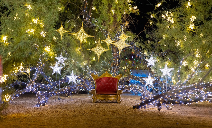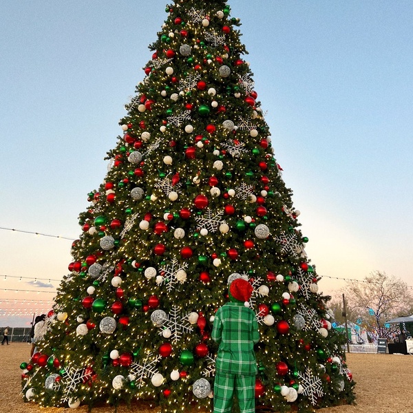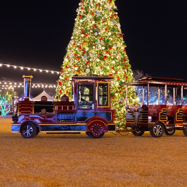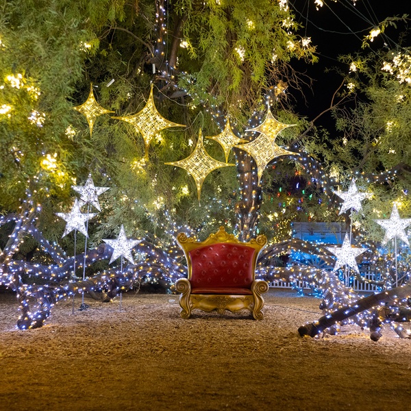 General admission includes access to 1.5 million lights and 150 illuminated trees, the Candy Cane Maze, the new Jolly Journey Train Ride, Frosty’s Flurry Feature, nightly pictures with Santa, Gingerbread Bounce Houses, the Desert Carousel, the Green Lair, Desert Farm Friends, endless photo opportunities, a 90ft Fun Slide, Bungee Trampolines, and live entertainment Thursday through Sunday.