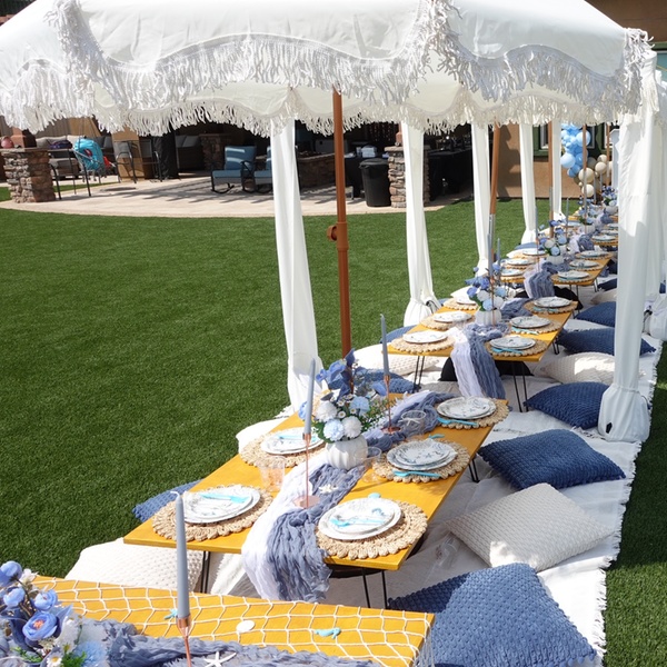 Every event I design is unique and tailored to your vision. I provide everything you need for a stress-free experience — custom tables, rugs, pillows, tableware, candles, florals, décor accents, and full setup and teardown. All you have to do is show up, relax, and enjoy.