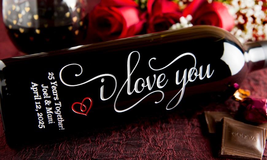 Double the celebration! Get two 750ml bottles (choice of California Chardonnay, Cabernet, Merlot, or Champagne), each custom etched with your unique message.