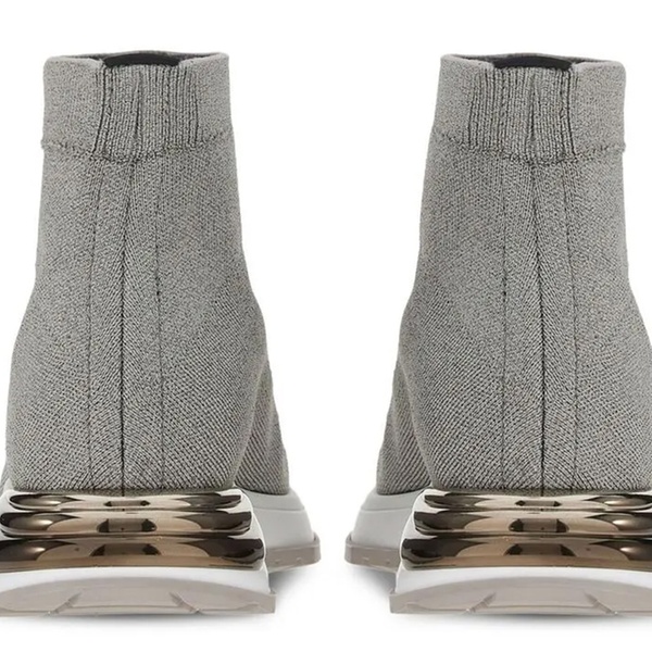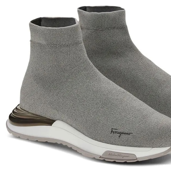 Option 6 Ferragamo Logo-Print Sock Sneaker — Grey — Available Size: US 7 Innovation meets Italian luxury in this contemporary sock sneaker design. The flexible knit construction hugs the foot like a second skin, providing unparalleled comfort and a modern, streamlined silhouette. The sophisticated grey colorway with logo printing throughout creates a subtle yet distinctive look that pairs beautifully with both athletic and casual ensembles. This forward-thinking design showcases Ferragamo's ability to honor tradition while embracing cutting-edge footwear technology, perfect for the style-conscious woman seeking both performance and prestige.