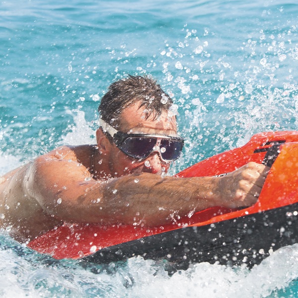 A SEABOB is an innovative watercraft that allows you to glide effortlessly through the water, both on the surface and underwater, like a dolphin. It's propelled by an electric jet system, making underwater exploration easy and fun.