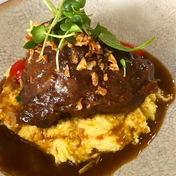 The Comfort Classic: Pair the Truffle-Parm Potato Croquettes with the Long Braised Beef Cheek and a side of Fire-Roasted Garden Veggies.