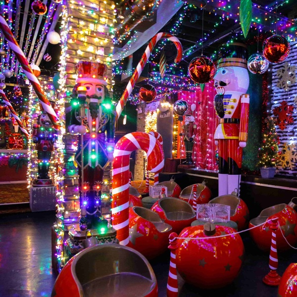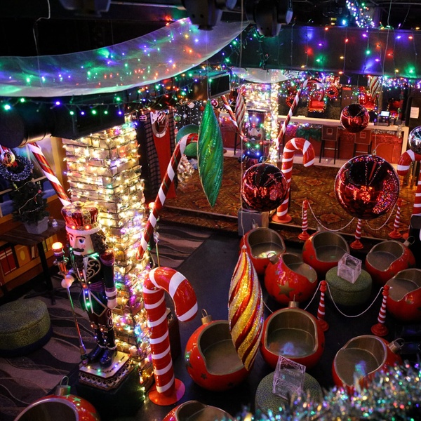 Sensory overload. Life-size nutcrackers, sexy Santas, and elves spinning tracks.