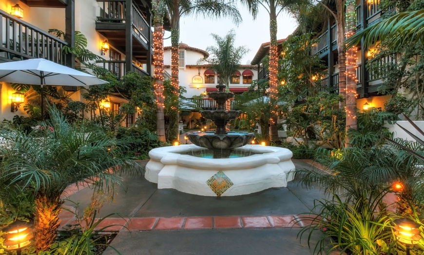 Exotic tropical blooms and a stone fountain punctuate the courtyard of this elegant hotel, which was built in a Spanish Mission style. It's just a short drive from wineries that produce some of Santa Barbara's finest pinot noir wines.