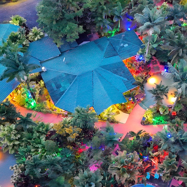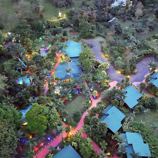 Stay in spacious cabins with private gardens and hammocks, and spend your days exploring the resort’s five natural hot spring pools, botanical gardens, butterfly sanctuary, and mud spa. Dine at the open-air tiki restaurant or sip cocktails to the sounds of the jungle.