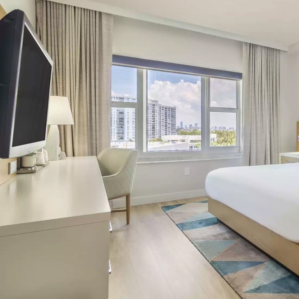 Our commitment to providing an unparalleled guest experience is evident in every corner of the resort. Relax by our heated outdoor heritage pool, savor a meal at our casual dining venues, or maintain your fitness regimen in our well-equipped gym. Each room and suite is thoughtfully designed to offer comfort and convenience, featuring modern touches like flat-screen TVs, complimentary WiFi, and in-room coffee and tea facilities. For those traveling with family, our spacious suites with added amenities like a mini-fridge and microwave ensure a comfortable stay. The Radisson Resort Miami Beach, with its blend of luxury and leisure, invites you to discover the charm of Florida's premier beach destination.