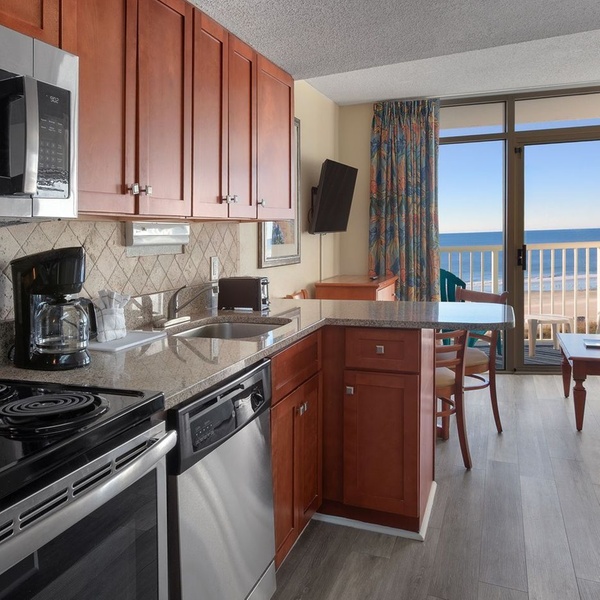 - In-room amenities: private balcony, refrigerator, microwave, stovetop & oven, and toaster