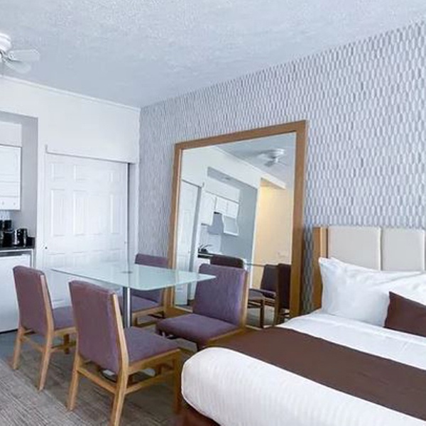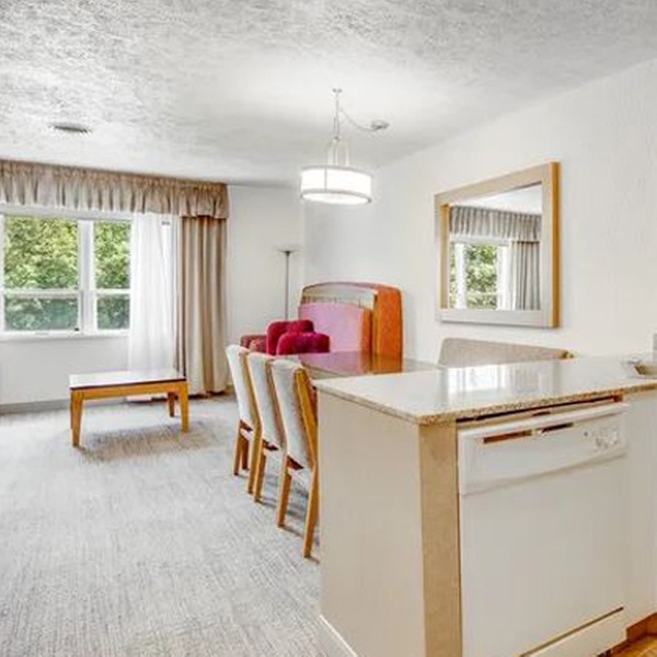 - Stay for up to four in a Town Center Junior Suite without Kitchenette, Town Center Junior Suite with Kitchenette, Town Center One-Bedroom Suite, or Willowbrook One-Bedroom Suite with Tub or Jacuzzi; or stay for up to six in a Town Center Two-Bedroom Suite.