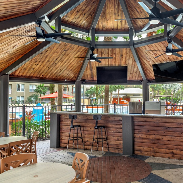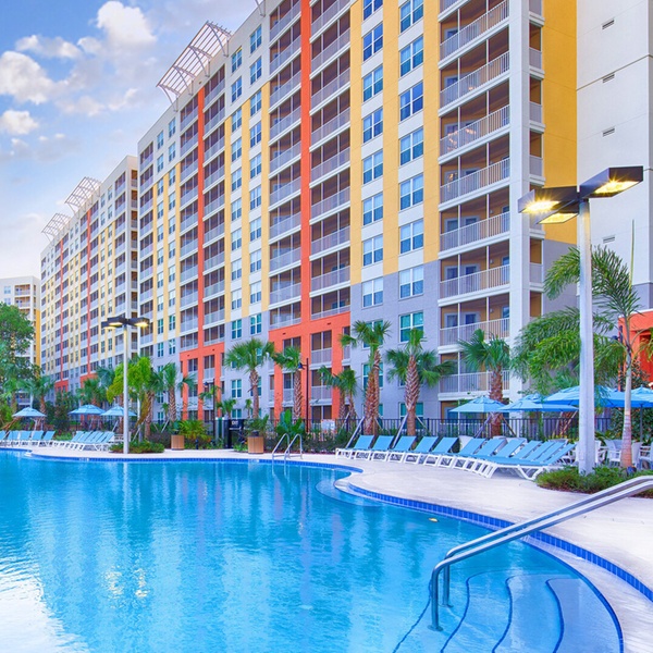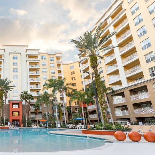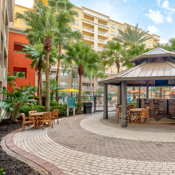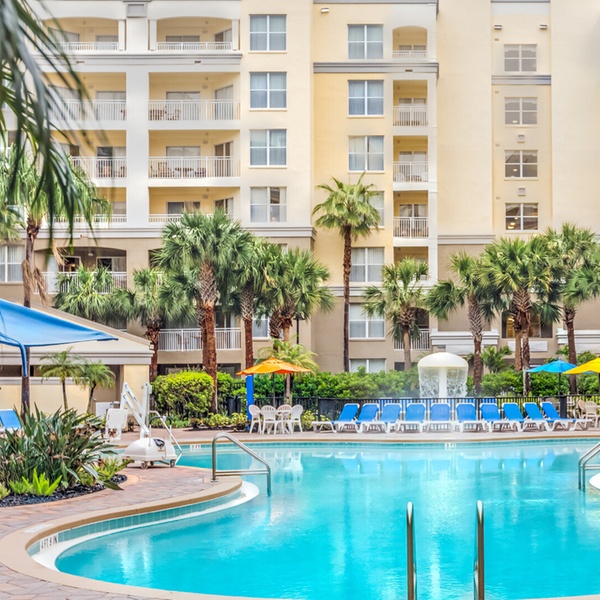 Vacation Village at Parkway Resort is a family-focused resort situated on Arabian Nights Boulevard in Kissimmee, Florida, just a short drive from world-famous theme parks like Walt Disney World®, Universal Studios Florida™, and SeaWorld® Orlando. The resort offers spacious one- and two-bedroom suites with full kitchens, living and dining areas, and comfortable, home-like amenities — making it ideal for families, groups, and extended stays. Guests can relax on-site in one of seven heated outdoor pools or hot tubs, wander scenic nature trails, or enjoy outdoor barbecue areas and picnic spots. The property also includes golf-course views, multiple recreation options like fitness centers, arcade/game rooms, and sports courts, plus shuttle service to nearby attractions for added convenience. Vacation Village at Parkway has earned continuous RCI Gold Crown recognition and Travelers’ Choice praise for its guest satisfaction and resort facilities.
