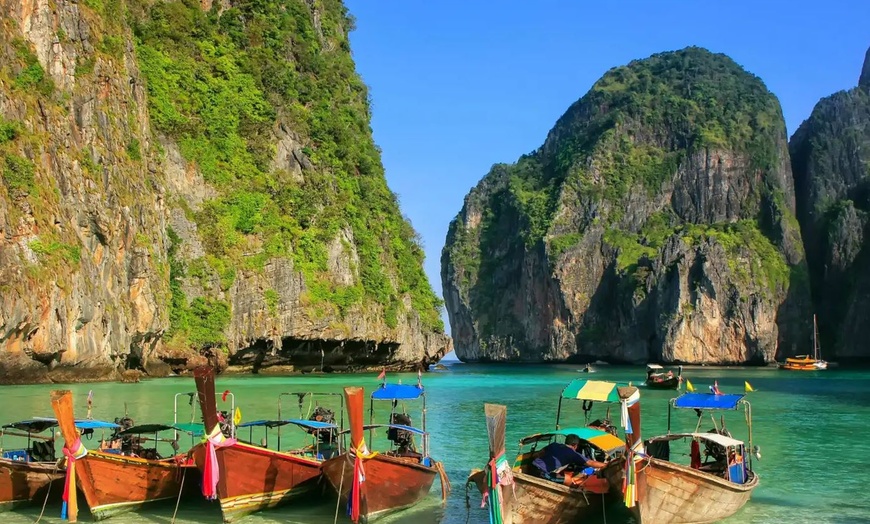 Escape to the vibrant landscapes of Thailand with an 8-day vacation package from Great Value Vacations. Begin your journey in the bustling metropolis of Bangkok, where you can explore iconic temples like Wat Arun and Wat Pho, shop at vibrant markets, and indulge in delectable street food. Take a scenic flight to the tropical paradise of Phuket, known for its stunning beaches and vibrant nightlife. Relax on the pristine sands of Patong Beach, embark on an island-hopping adventure to Phi Phi Islands, and experience the vibrant culture of Phuket Town. The package includes airfare, accommodations, and guided tours, providing a seamless and memorable Thai experience.