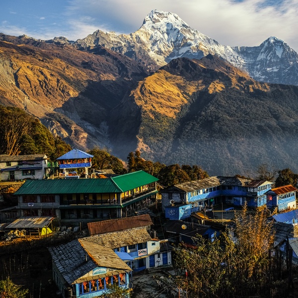 This morning, descend through a forest of wildflowers. Try and spot some of the long-tailed monkeys that inhabit this area! Arrive in the village of Ghandruk, beautifully set against the peaks of Mount Fishtail, Annapurna South, Ganga Purna, Annapurna III, and HiunChuli. Visit the Annapurna Area Conservation Project, the Gurung Museum, and a sheep wool weaving workshop. Overnight at your lodge in Ghandruk (4 miles: 3–4 hrs gradually downhill) (B)