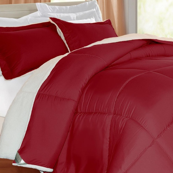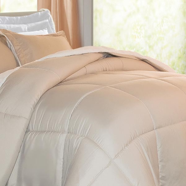 This plush microfiber and sherpa comforter encloses a polyester fill that offers down-like comfort without rousing allergies