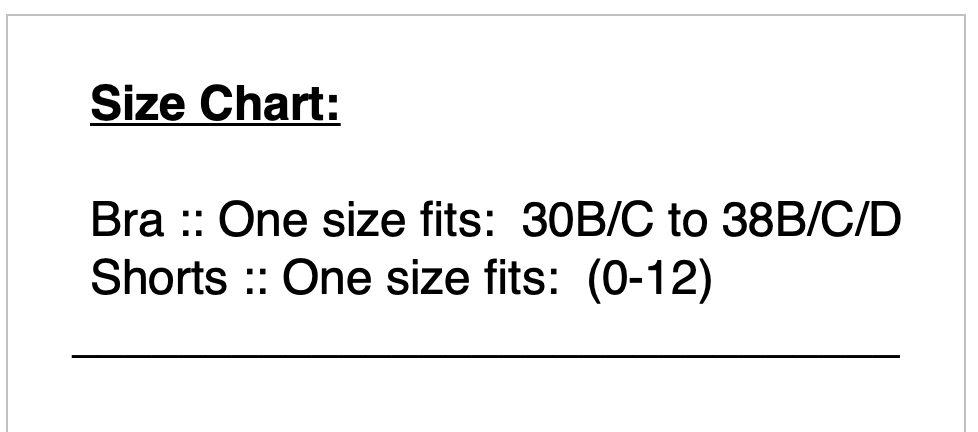 - Sizing Chart: Custom