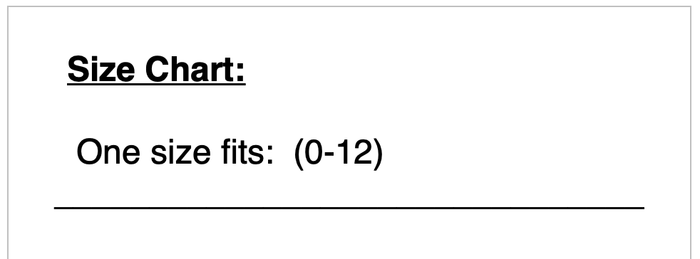 - Sizing Chart: Custom