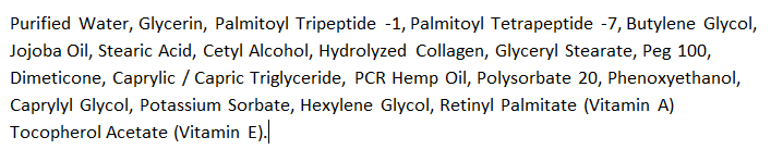 - Ingredients: Purified Water, Glycerin, Palmitoyl Tripeptide -1; see the full ingredients list here