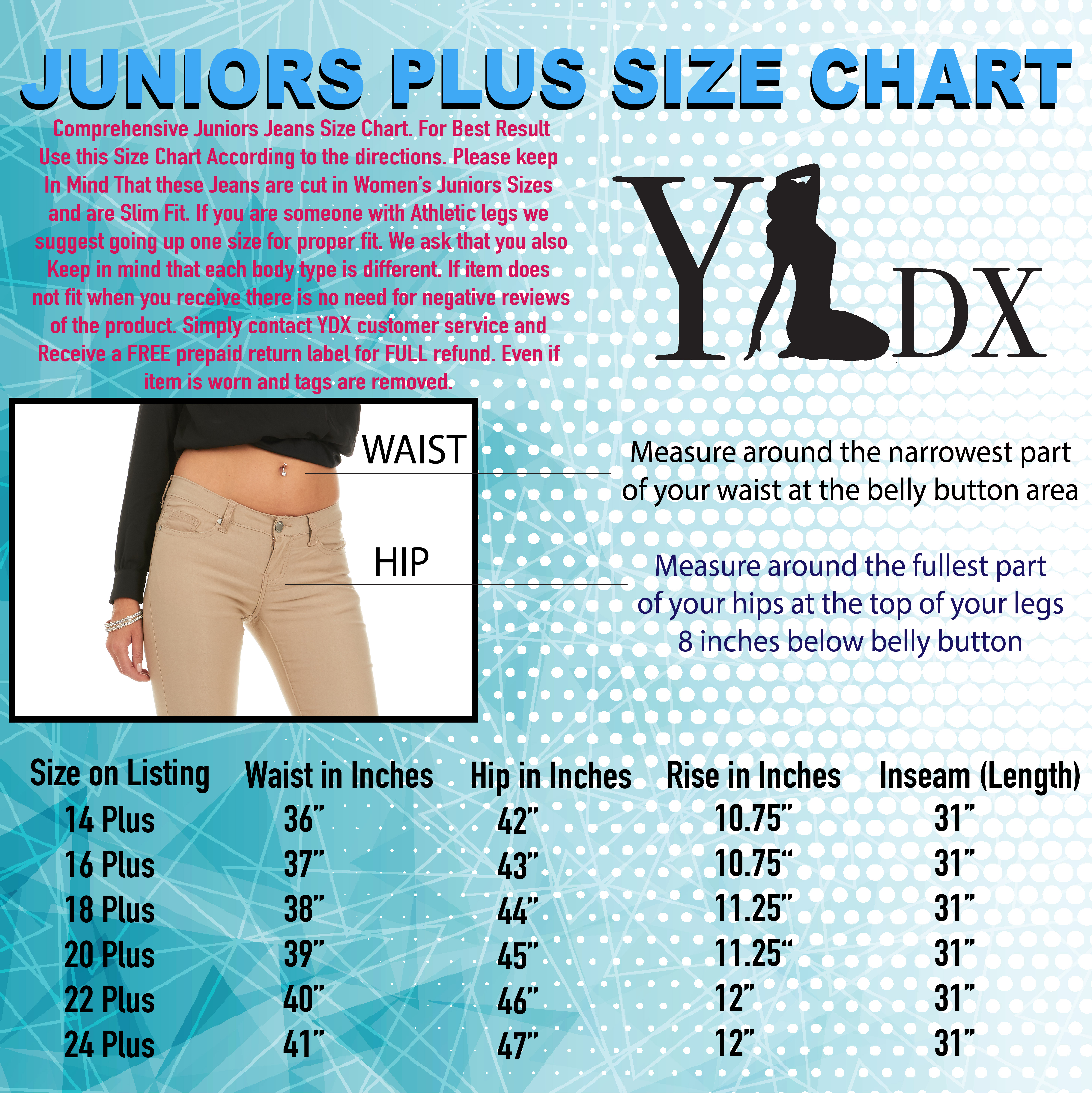 - Plus Size or Juniors for the right fit. XL, 2XL 3XL and even 4XL Jeans