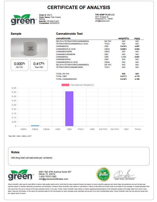 This CBD-infused cream made with 100% natural hemp oil s formulated to help reduce pain and soreness while moisturizing dry skin