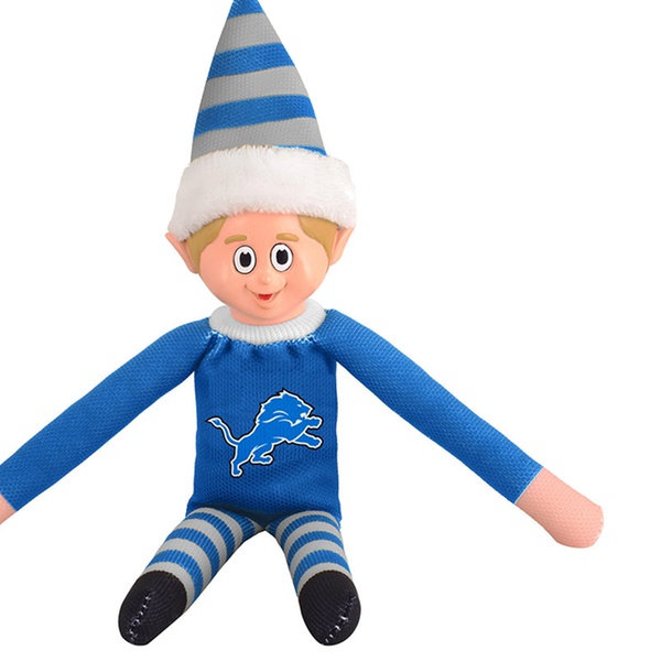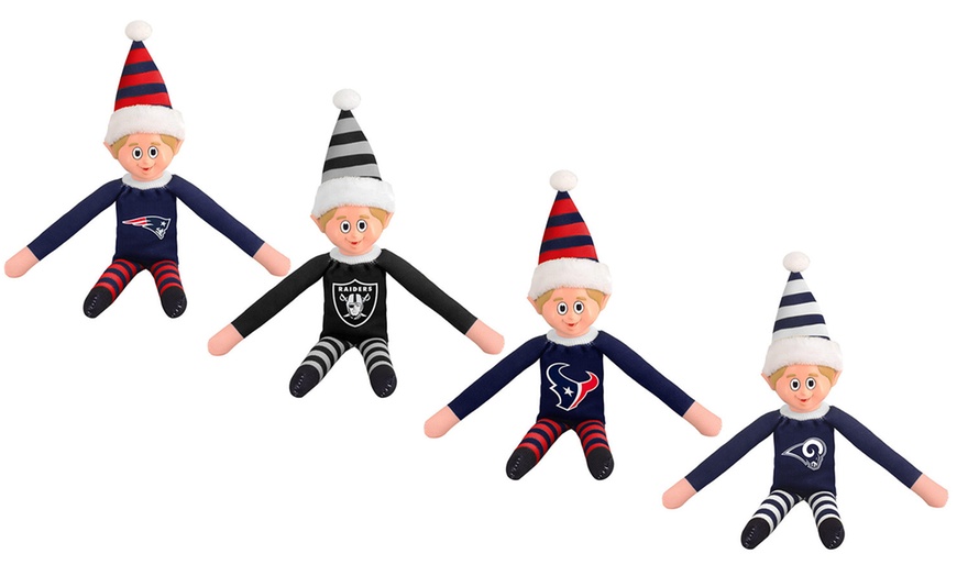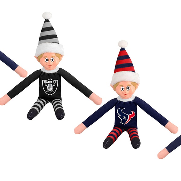 Elf featuring officially licensed NFL team’s logo on his sweatshirt and a Santa hat for the season, for ages 3 and up