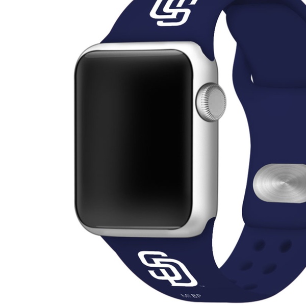 This silicone replacement band for Apple Watch models features an officially licensed design with an MLB team’s color and logo