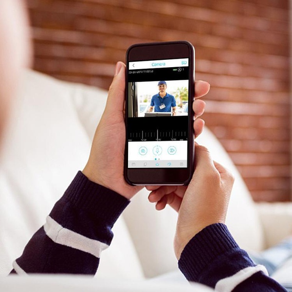 This video camera doorbell with two-way audio, Wi-Fi connectivity, and IR night vision allows to access the video remotely, even at night