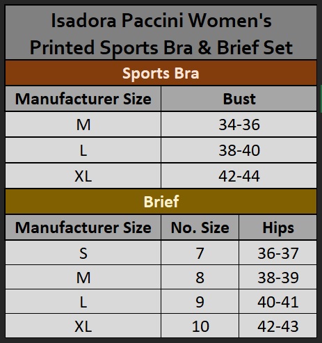 Isadora Paccini's Sports Bra & Brief Set is a smart addition to anyone’s wardrobe. Whether you’re wearing it for leisure or for the gym, these bra keeps you supported while keeping a smooth appearance. An active lifestyle requires a brand that can give support and comfort.