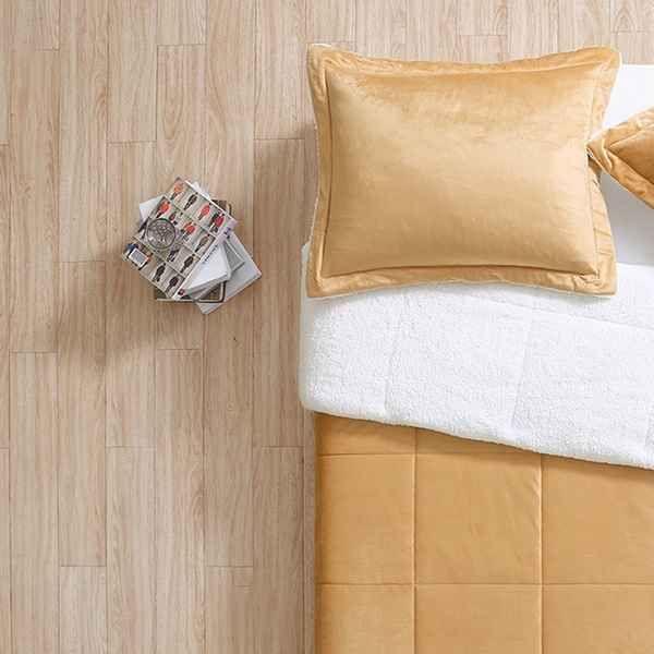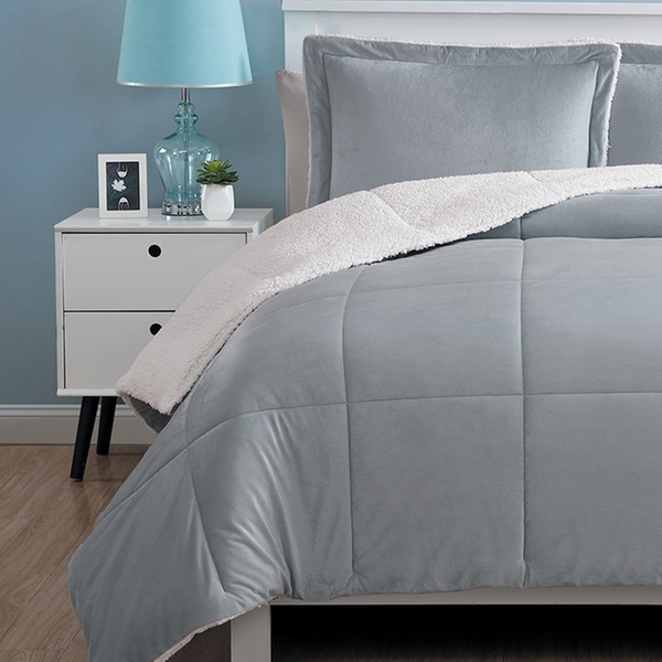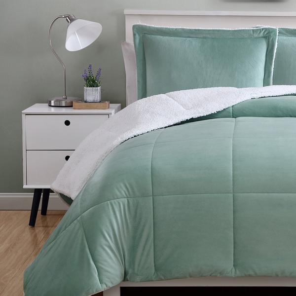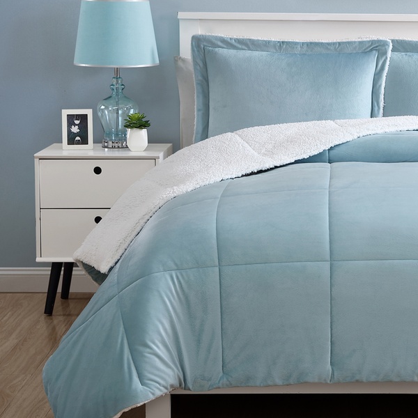 This reversible comforter featuring a chosen solid color on one side and white on the other can bring a fresh touch to your bedroom decor