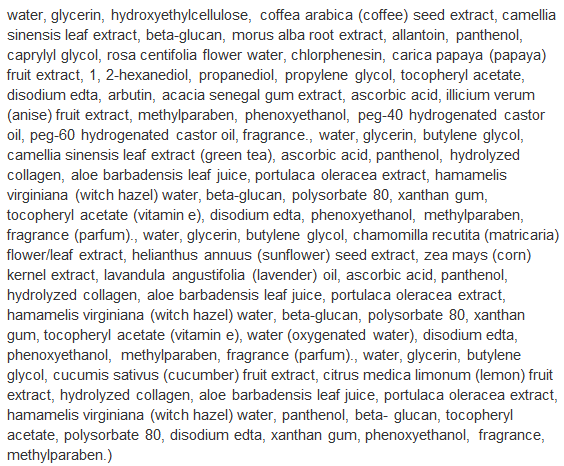 - Ingredients: water, glycerin, hydroxyethylcellulose, Coffea arabica; see the full ingredients list here