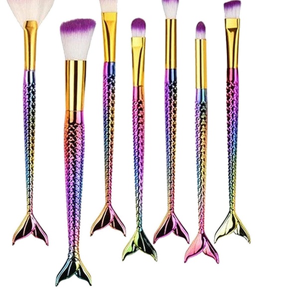 Suitable for home and professional use, this 10-piece set of mermaid tail-inspired makeup brushes allows for precise makeup application