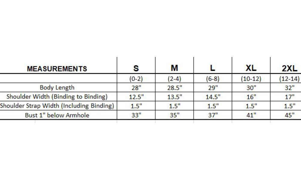 - Sizing chart