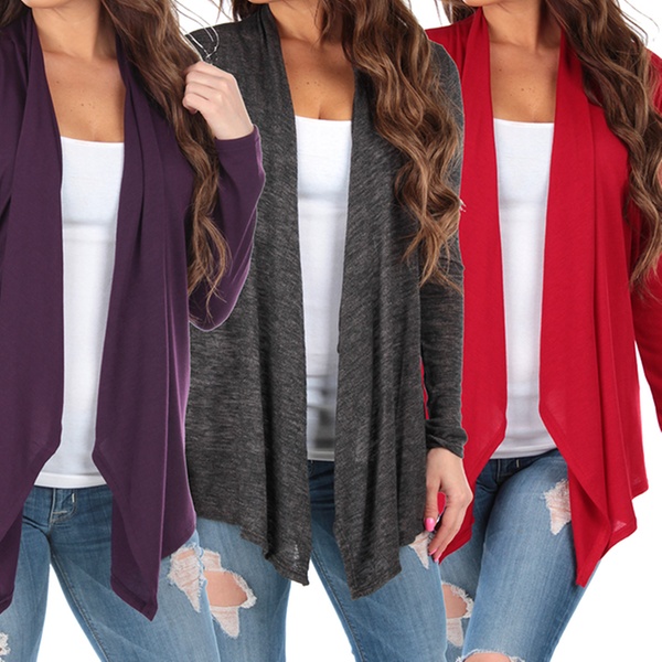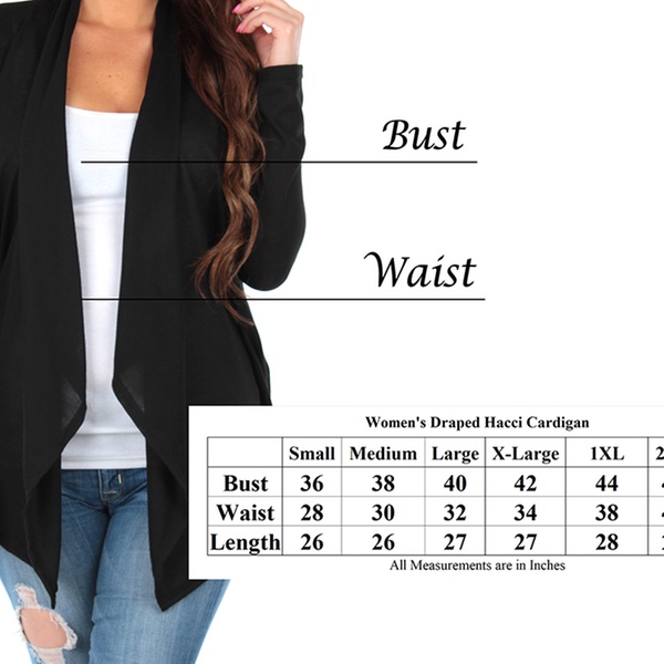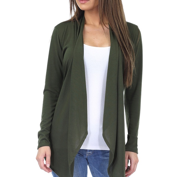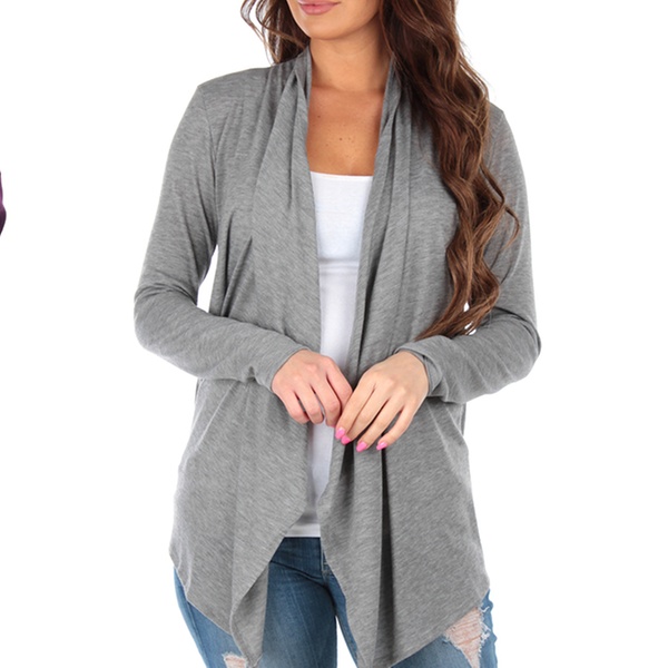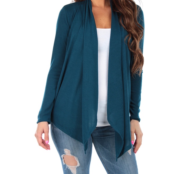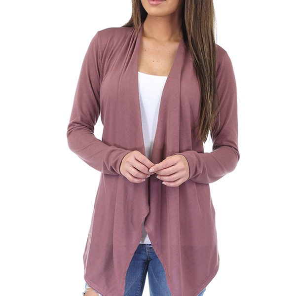 Women’s Hacci draped cardigan made with a blend of polyester, rayon, and spandex, pairs well with jeans