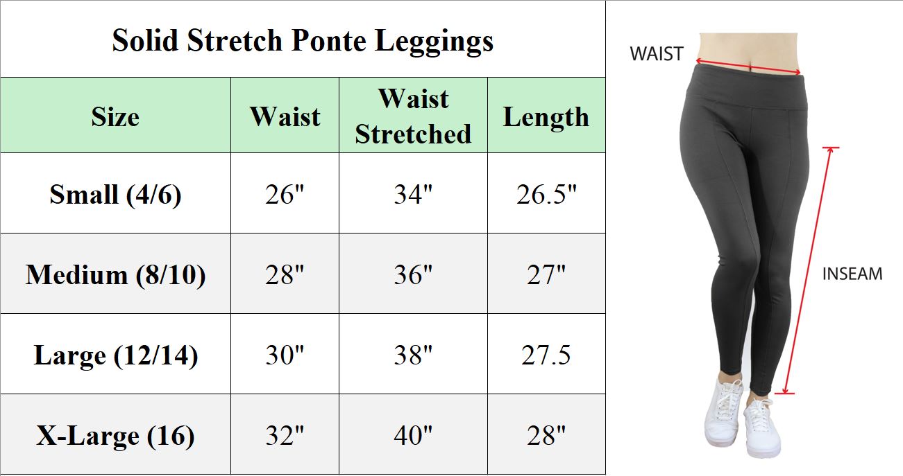 Women's Solid Stretch Ponte Leggings (S-XL) Solid Black L (12/14) Single
